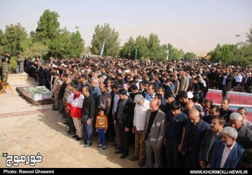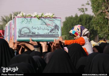 رئیس بنیاد حفظ آثار و نشر ارزش های دفاع مقدس استان بوشهر گفت: پیکر مقدس دو شهید دفاع مقدس بر دستان مردم خورموج از میدان شهید بهشتی تا بوستان مفتون تشییع و سپس در این بوستان به خاک سپرده شدند. این شهدا 24 و 29 ساله هستند و در عملیات های رمضان و خیبر در شرق بصره و مجنون به شهادت رسیده اند.
