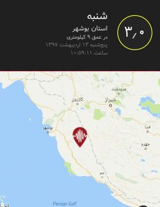 این زمین لرزه در موقعیت عرض جغرافیایی ۲۸.۵۵ شمالی و طول جغرافیایی ۵۱.۷۲ شرقی و در عمق ۹ کیلومتری زمین رخ داده است.