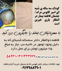 از همهی هم استانیهای عزیز خواهشمندیم در صورت امکان دستان همت و غیرت خود را برای کمک به این کودک سهساله دراز کنند تا شاهد عزادار شدن این خانواده جوان نباشیم.